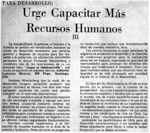 Jaque al subdesarrollo [artículo] Agustín Billa Garrido.