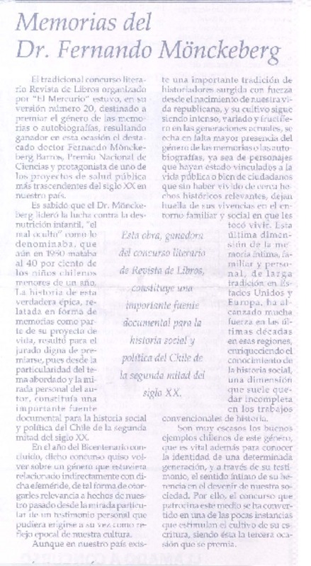 Memorias del Dr. Fernando Mönckeberg [artículo].