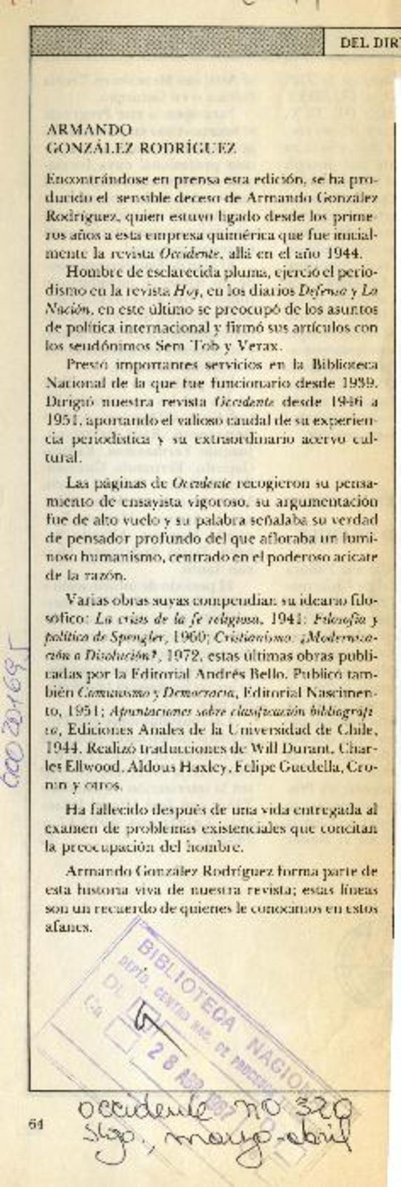 Autores chilenos - Cristianismo: modernización o disolución - González Rodríguez, Armando - entrevista