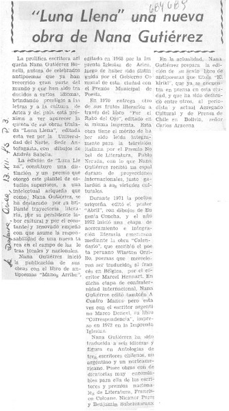 Luna llena - Gutiérrez, Nana - Autoras chilenas