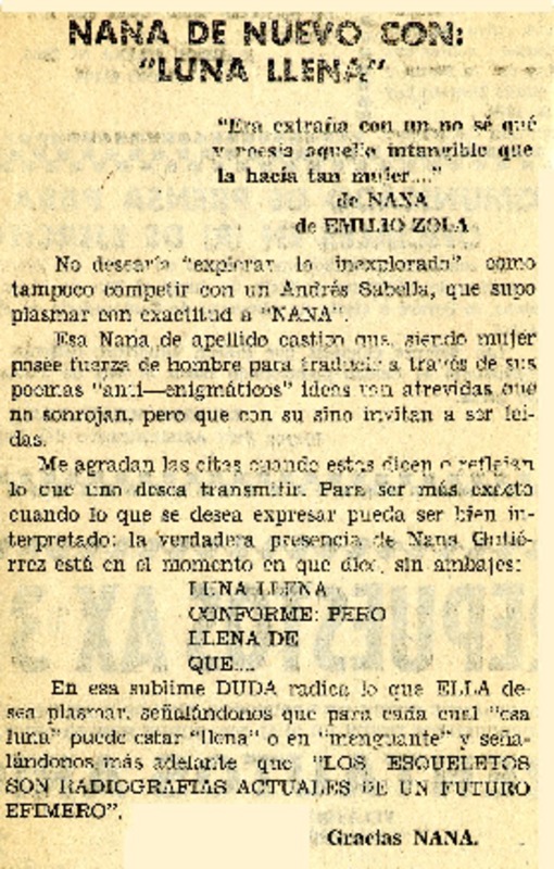 Luna llena - Gutiérrez, Nana - Autores chilenos