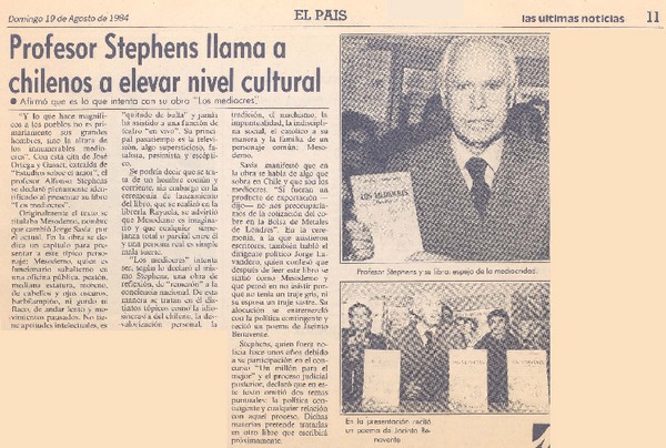 Profesor Stephens llama a chilenos a elevar nivel cultural. [artículo]