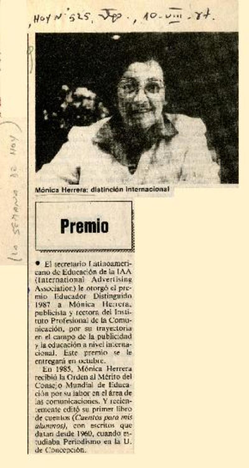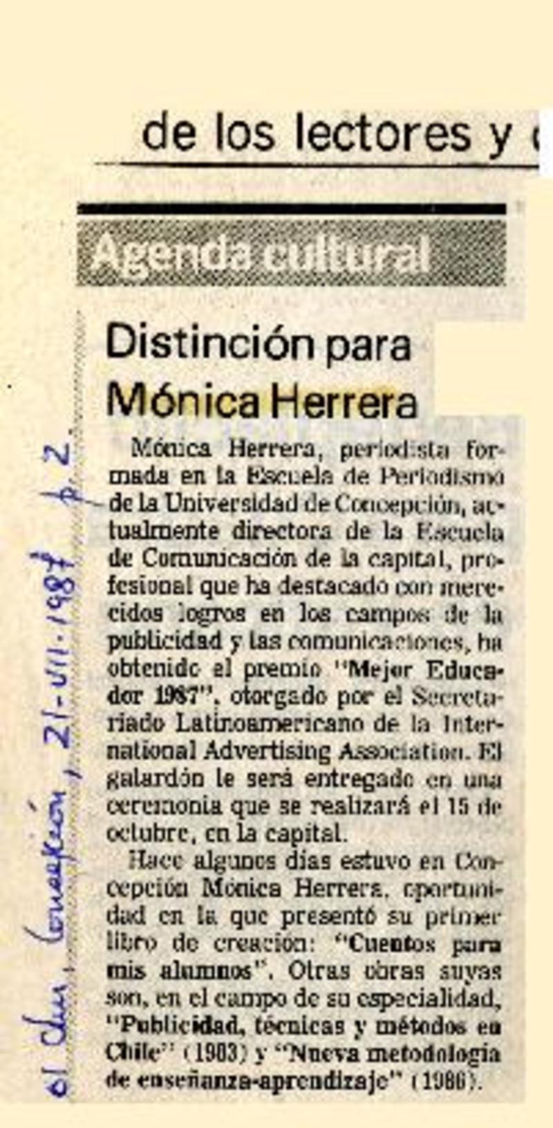Distinción para Mónica Herrera [artículo].