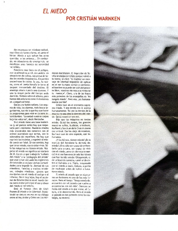 El miedo [artículo] Cristián Warnken.