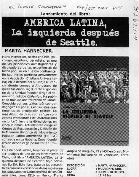Autores chilenos - Harnecker, Marta - América Latina, la izquierda después de Seattle
