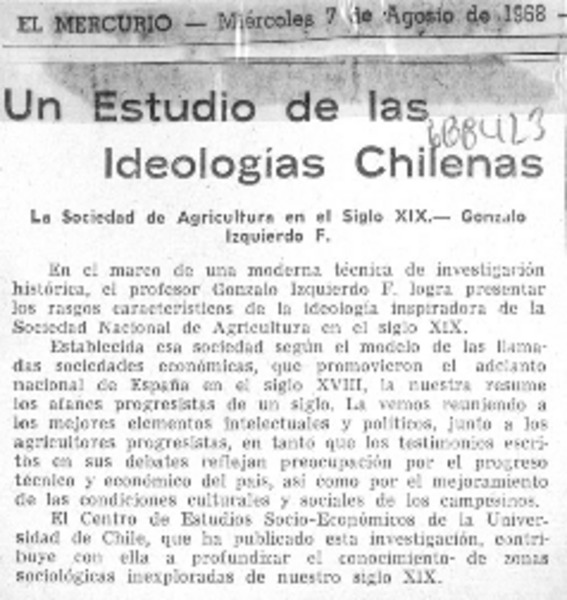 "Estudio de las ideologías chilenas" [artículo] Lillian Calm.
