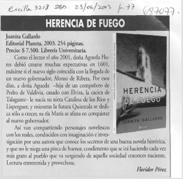 Herencia de Fuego [artículo] Juan Andrés Piña.
