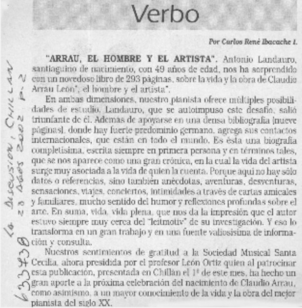 "Arrau, el hombre y el artista" [artículo] Carlos René Ibacache I.