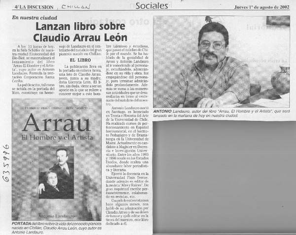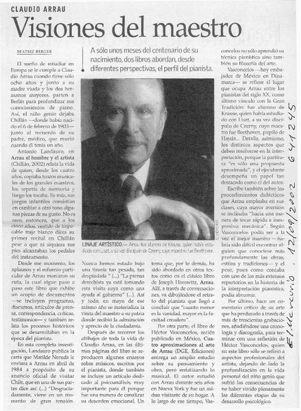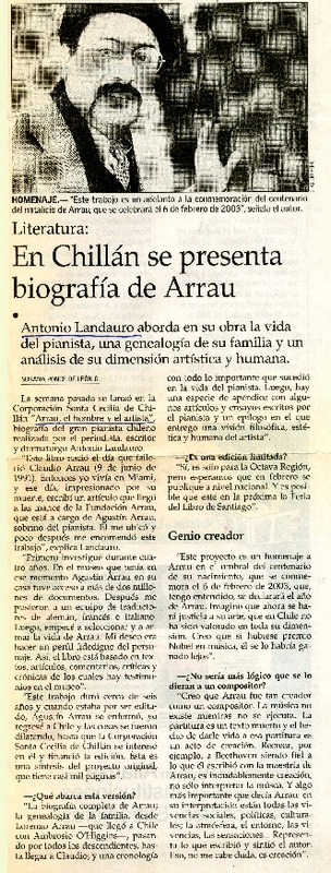 En Chillán se presenta biografía de Arrau [artículo] Susana Ponce de León G.
