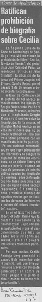 Ratifican prohibición de biografía sobre Cecilia. [artículo]
