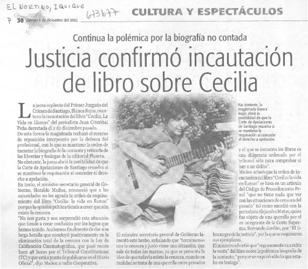 Justicia confirmó incautación de libro sobre Cecilia. [artículo]