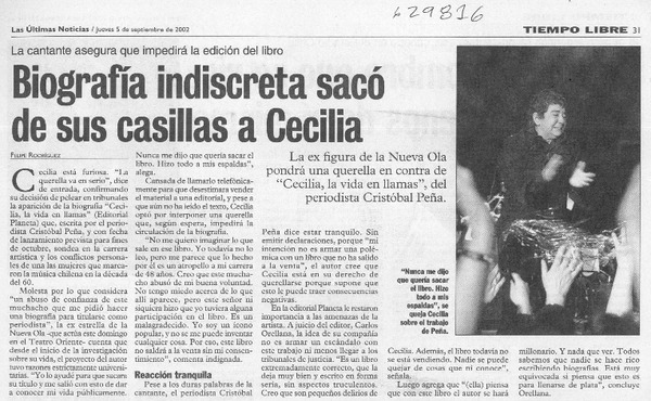 Biografía indiscreta sacó de sus casillas a Cecilia [artículo] Felipe Rodríguez