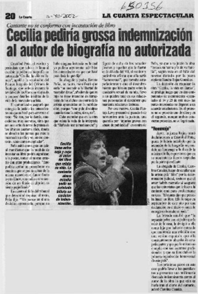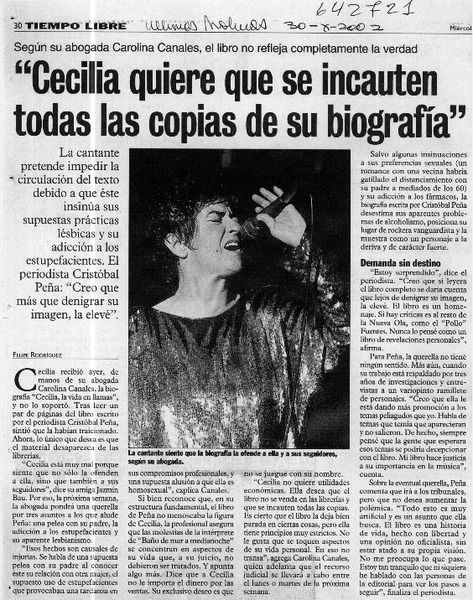 "Cecilia quiere que se incauten todas las copias de su biografía" [artículo] Felipe Rodríguez