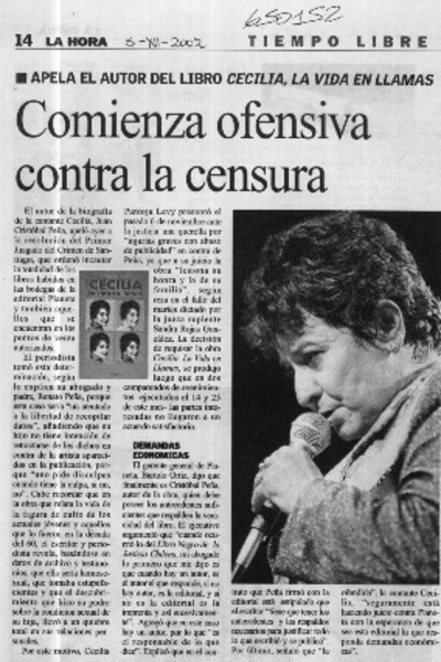 Gobierno molesto por incautación de biografía de Cecilia [artículo]