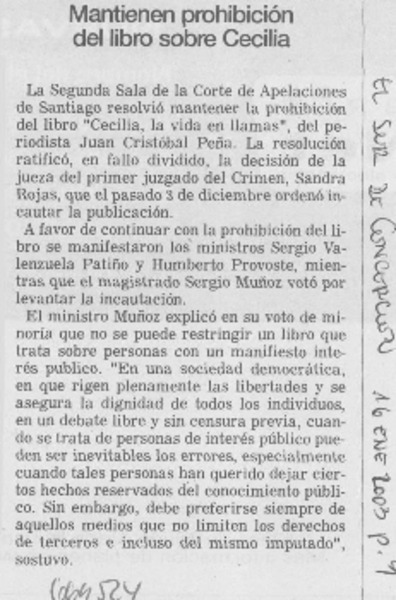 Mantienen prohibición del libro sobre Cecilia. [artículo]