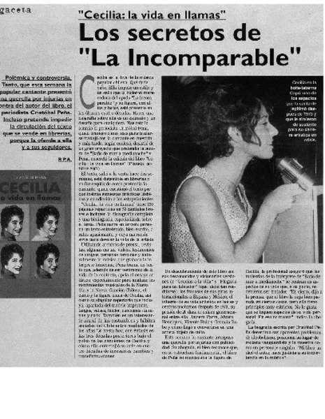 Cecilia, la vida en llamas. Nace la incomparable [artículo] Wellington Rojas Valdebenito.