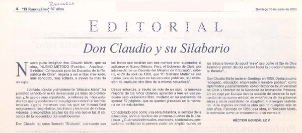 Don Claudio y su Silabario [artículo] Héctor González V.