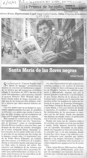 Santa María de las flores negras [artículo] Silvia Fariña.