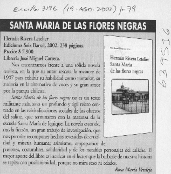 Autores chilenos - Teitelboim, Volodia - Rivera Letelier, Hernán - Santa María de las flores negras - Erazo, Martín - Hijo del salitre - 1907, el año de la flor negra