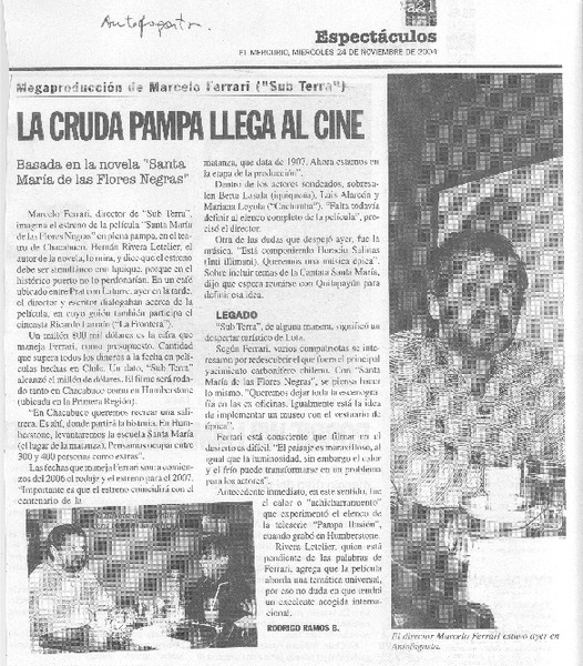 La cruda pampa llega al cine [artículo] Rodrigo Ramos B.