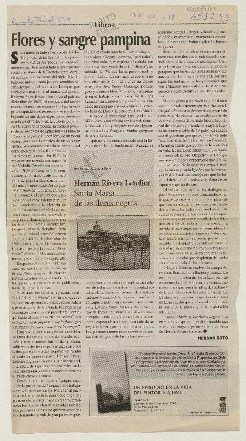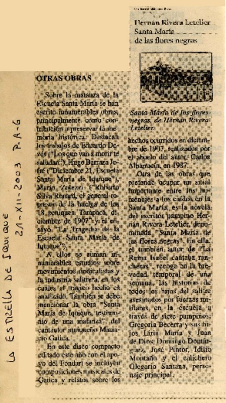Autores chilenos - Entrevistas - Rivera Letelier, Hernán - Santa María de las flores negras