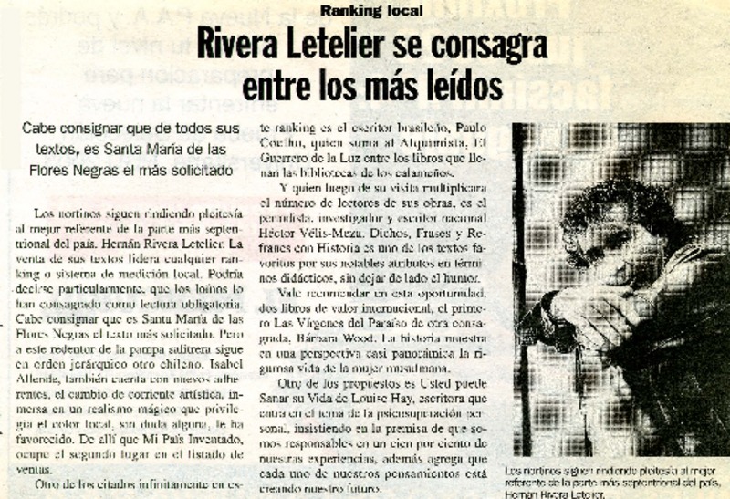 Rivera Letelier se consagra entre los más leídos. [artículo]