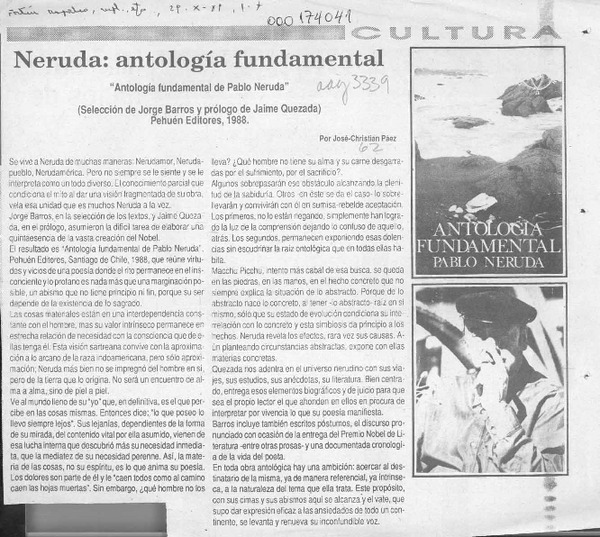 Neruda, "Antología fundamental" [artículo] José-Christian Páez.