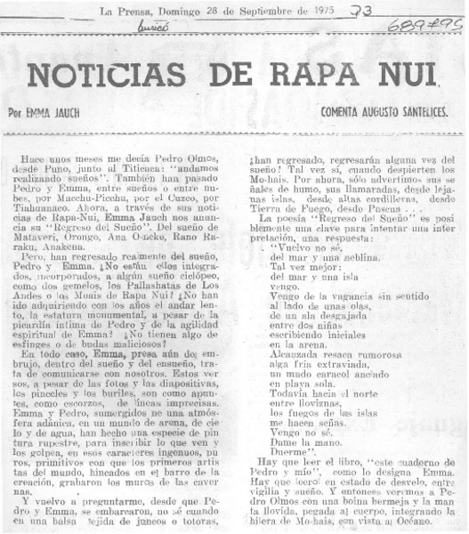 Noticias de Rapa-Nui" de Emma Jauch [artículo] Adolfo Simpson T.