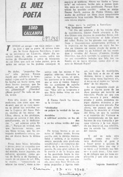 El juez poeta [artículo] Augusto Santelices y Lord Callampa.