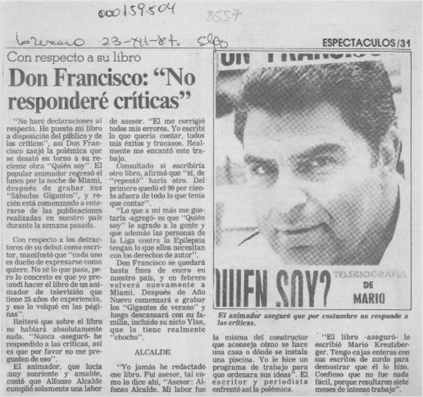 Don Francisco lanzó muy fuerte su libraco [artículo].