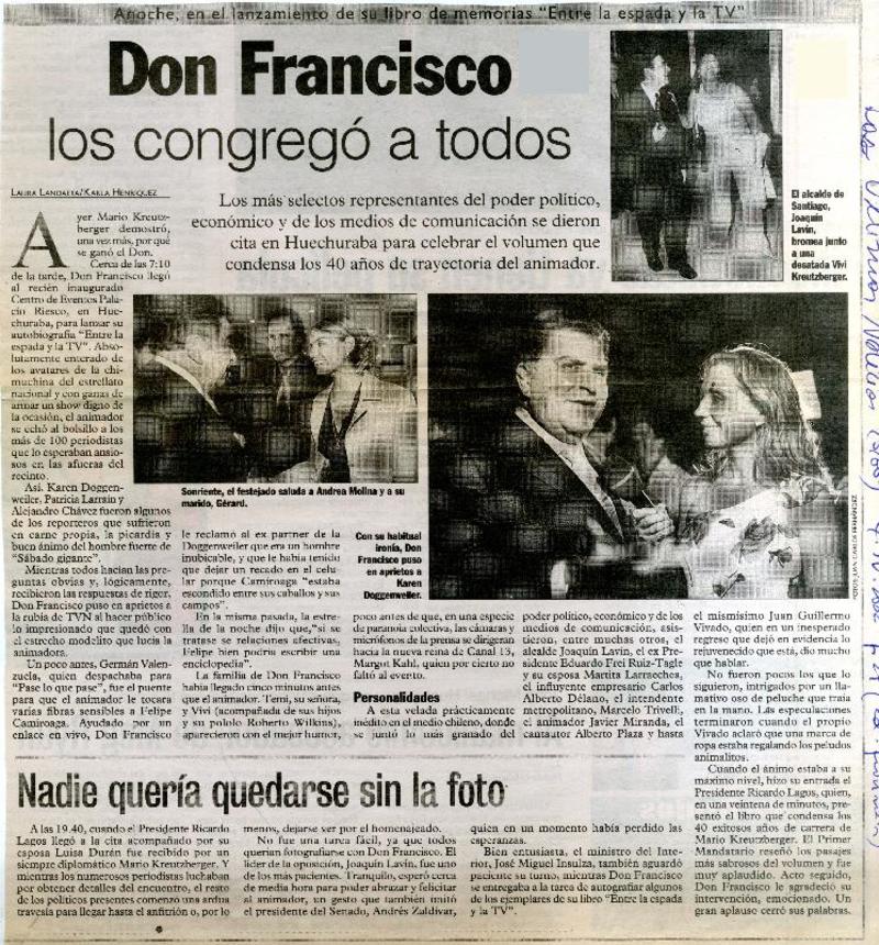 Don Francisco los congregó a todos [artículo] Laura Landaeta <y> Karla Henríquez.