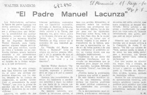Autores chilenos - Hanisch, Walter - Lacunza, Manuel - Padre Manuel Lacunz
