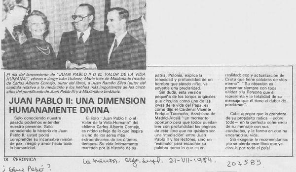 Juan Pablo II; una dimensión humanamente divina [artículo].