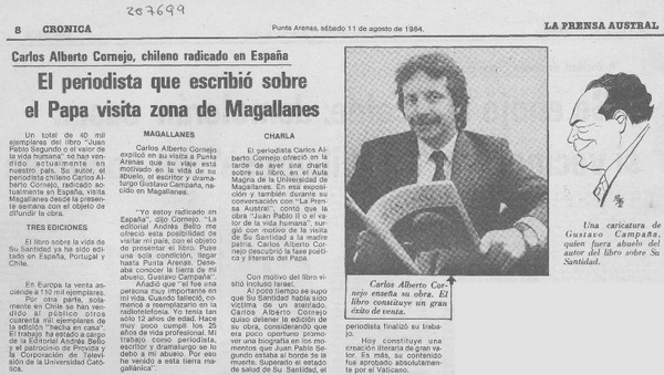 El Periodista que escribió sobre el Papa visita zona de Magallanes [artículo].