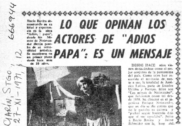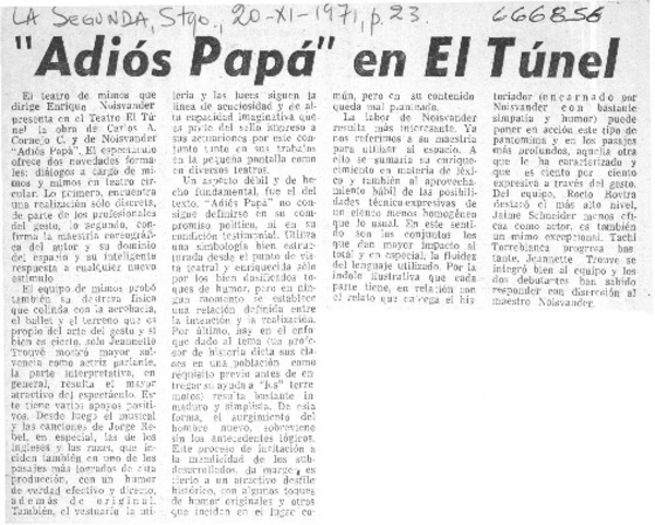 Adiós Papá"! es una obra de actualidad que reúne mimos, humor e ingenio [artículo] Raquel Cordero.