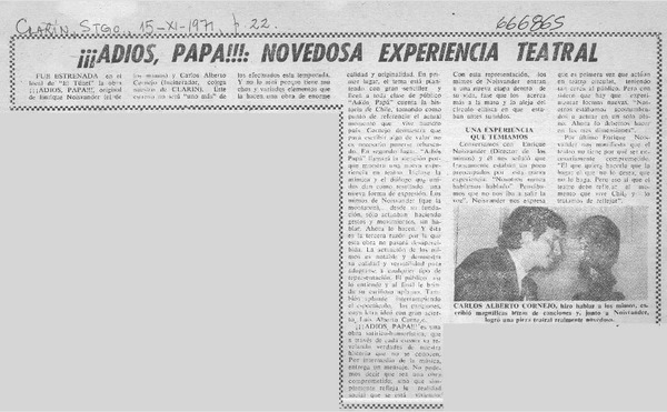 Entrevistas - Cornejo, Carlos Alberto - Autores chilenos - Adiós papá! - Noisvander, Enrique