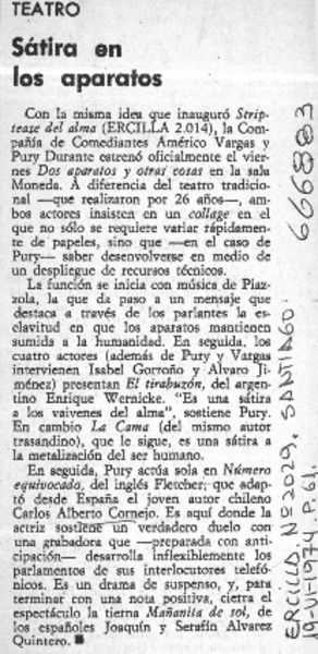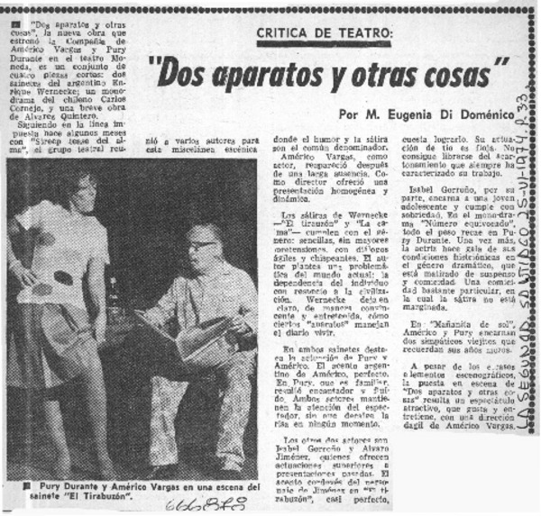 Dos aparatos y otras cosas" se estrenó en la "Moneda" [artículo] M. E. R.