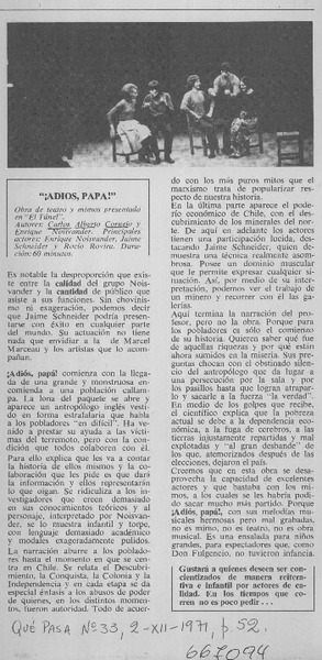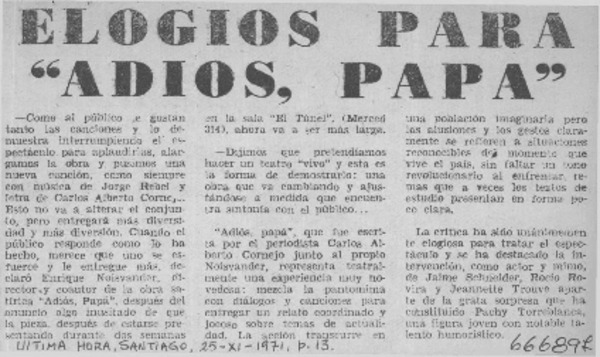 Adiós papá!, novedosa experiencia teatral. [artículo]