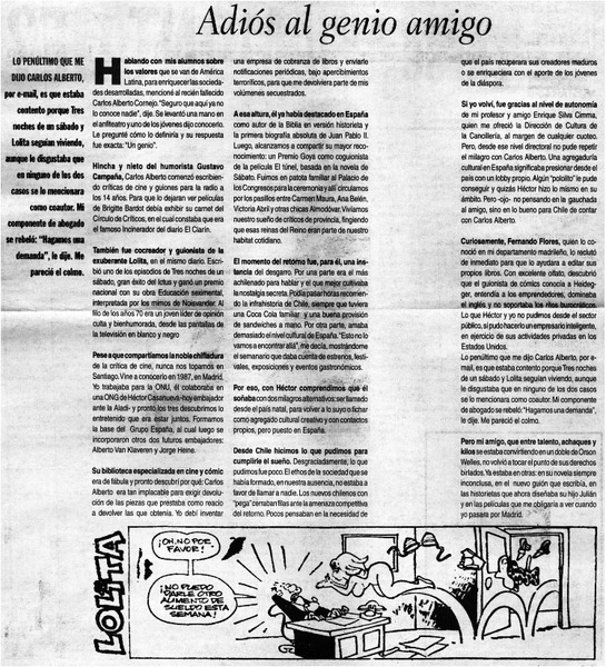 Adiós al genio amigo [artículo] José Rodríguez Elizondo.