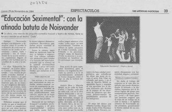 "Educación seximental", con la atinada batuta de Noisvander [artículo].