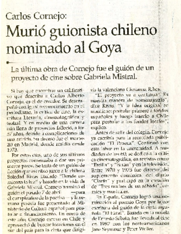 Autores chilenos - Cornejo, Carlos Alberto - Número equivocado