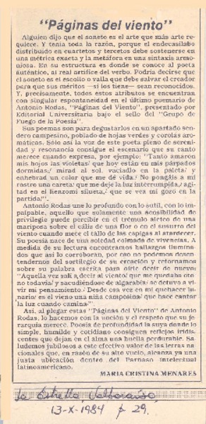 Autores chilenos - Rodas, Antonio - Páginas del viento