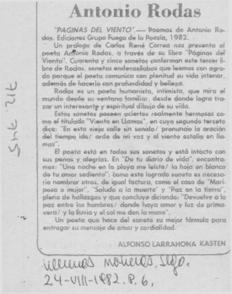 Antonio Rodas [artículo] Alfonso Larrahona Kästen.