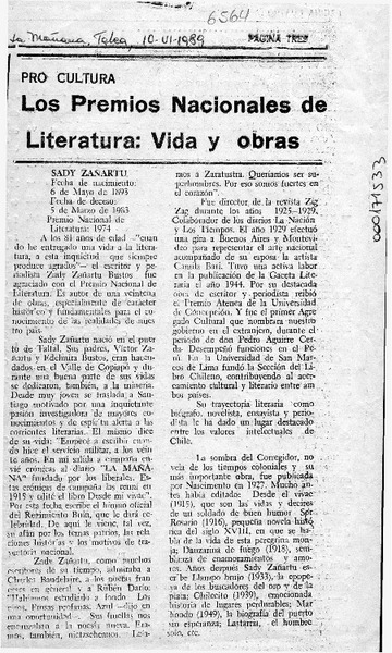 Sady Zañartu, premio nac. de literatura [artículo] Jaime Vásquez.