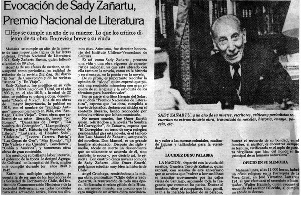 Evocación de Sady Zañartu, Premio Nacional de Literatura. [artículo]