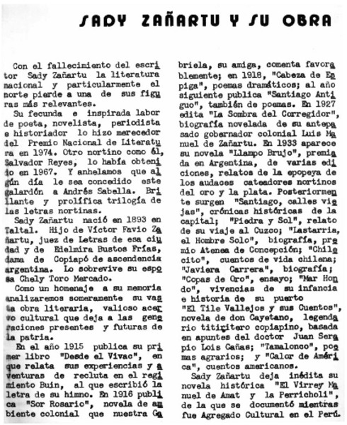 Sady Zañartu, gran nortino [artículo] Yolanda Didier B.
