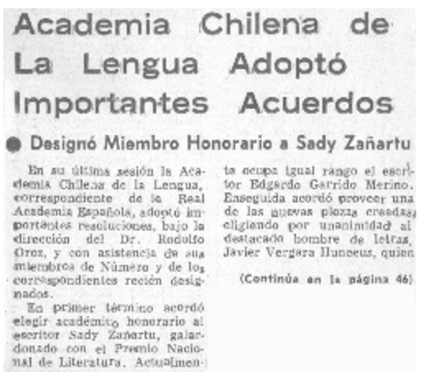 Academia Chilena de La Lengua adoptó importantes acuerdos. [artículo]