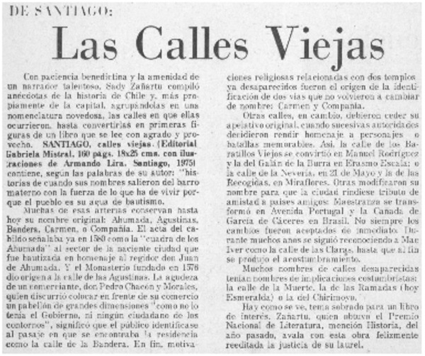 Autores chilenos - Calles viejas - Zañartu, Sady
