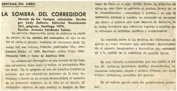 Sady Zañartu: La Sombra del Corregidor [artículo] Fidel Araneda Bravo.