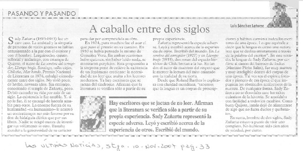 A caballo entre dos siglos [artículo] Luis Sánchez Latorre.